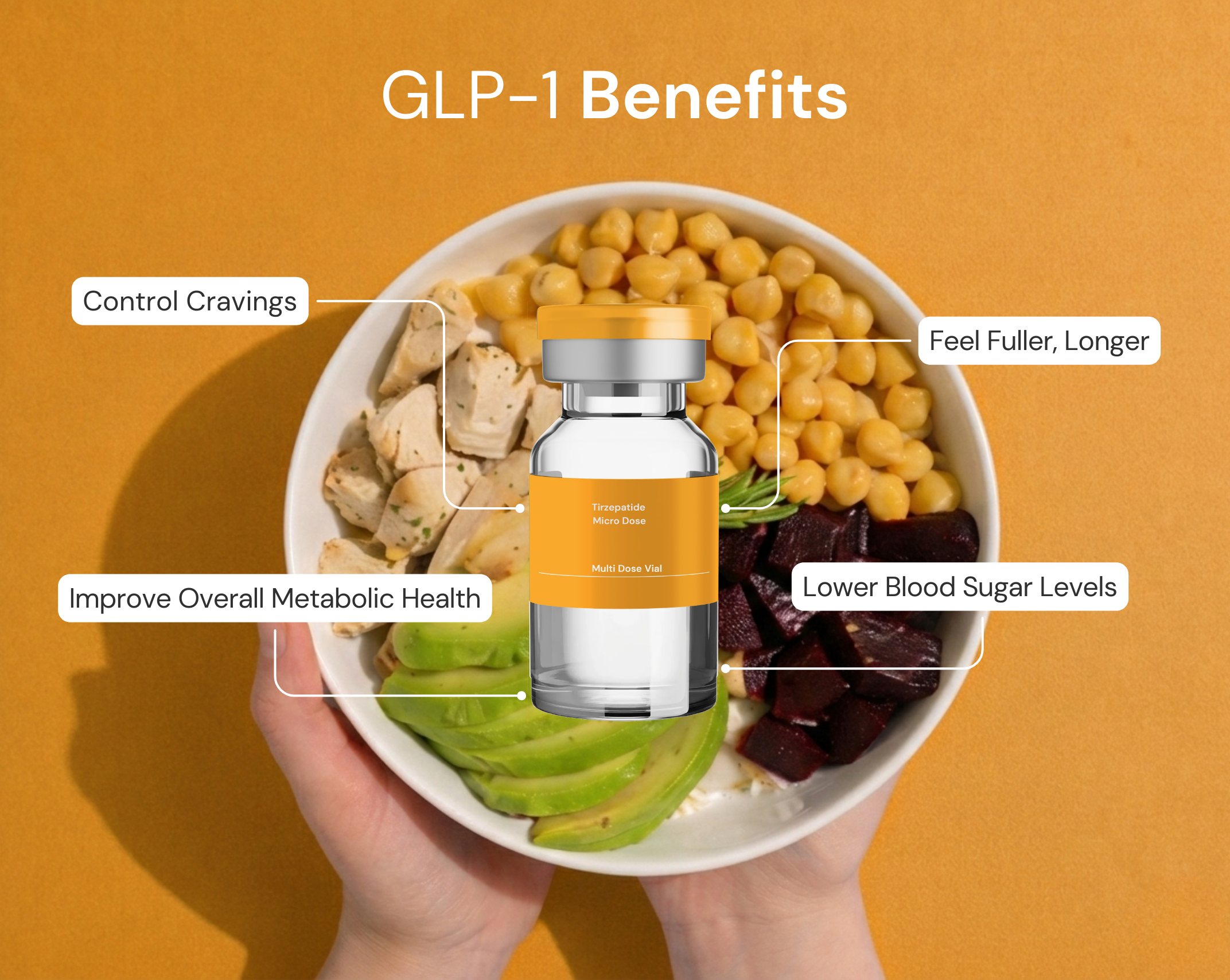 Small doses of Tirzepatide taken once weekly can provide a gentle nudge that helps you feel fuller after small meals and maintain a healthy weight. Think of it as a lighter approach for people who don’t qualify for traditional GLP-1 treatment. It’s sustainable, subtle, and fits into real life.